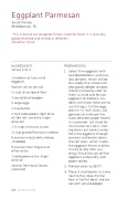 1. Select firm eggplant with rounded bottoms and shal- low dimples, which will be less seedy than those with elongated, deeper dimples. (Some mistakenly refer to them as male and female eggplant, but botany stu- dents will know there are no such things.) Cut the egg- plant in 1⁄4-inch slices. Salt generously and layer the slices between paper towels in a colander. Let stand for 20 minutes to 1 hour. (Salt- ing draws out excess water from the eggplant through osmosis and breaks down the cell walls, which makes the eggplant firmer and less mushy or oily after sau- téing.) Rinse the salt off the eggplant and pat dry with paper towels.
